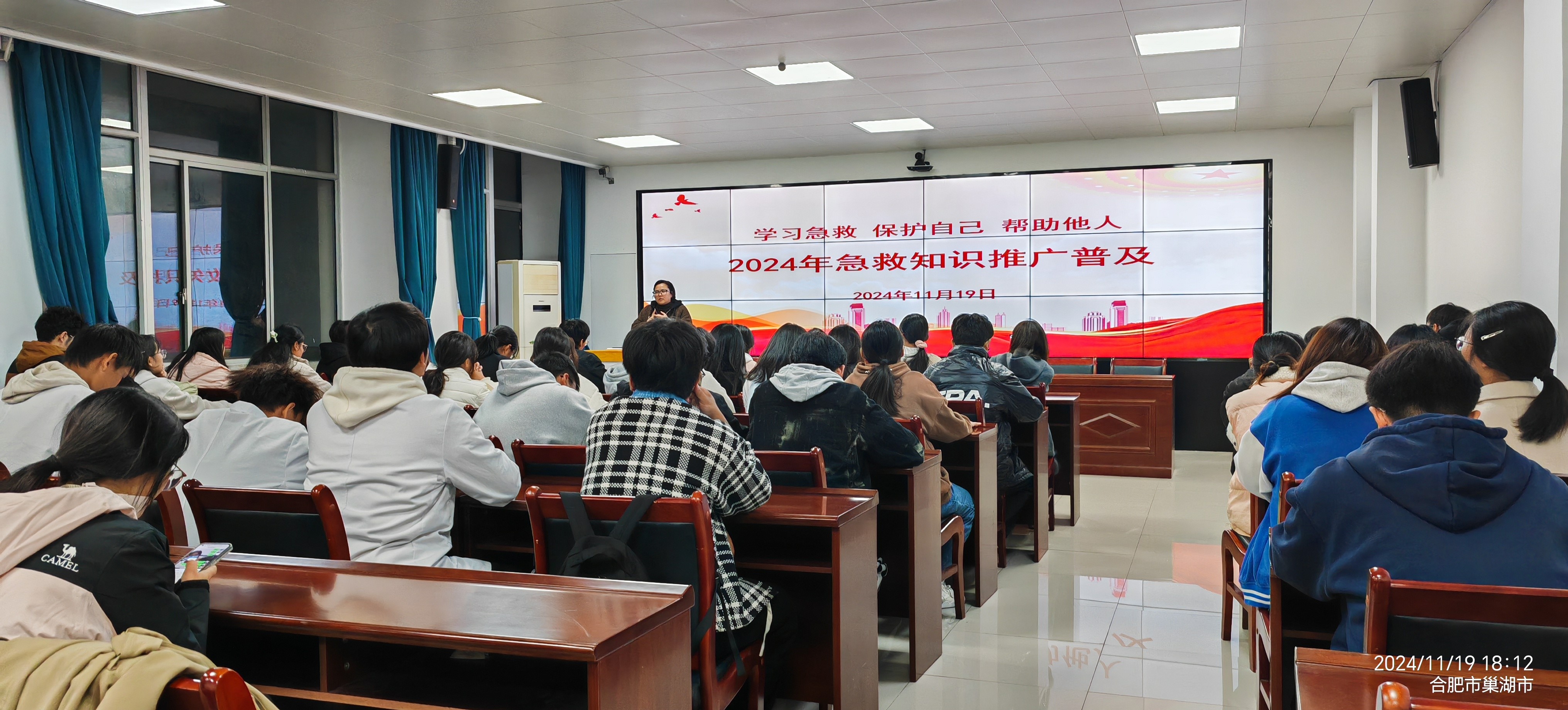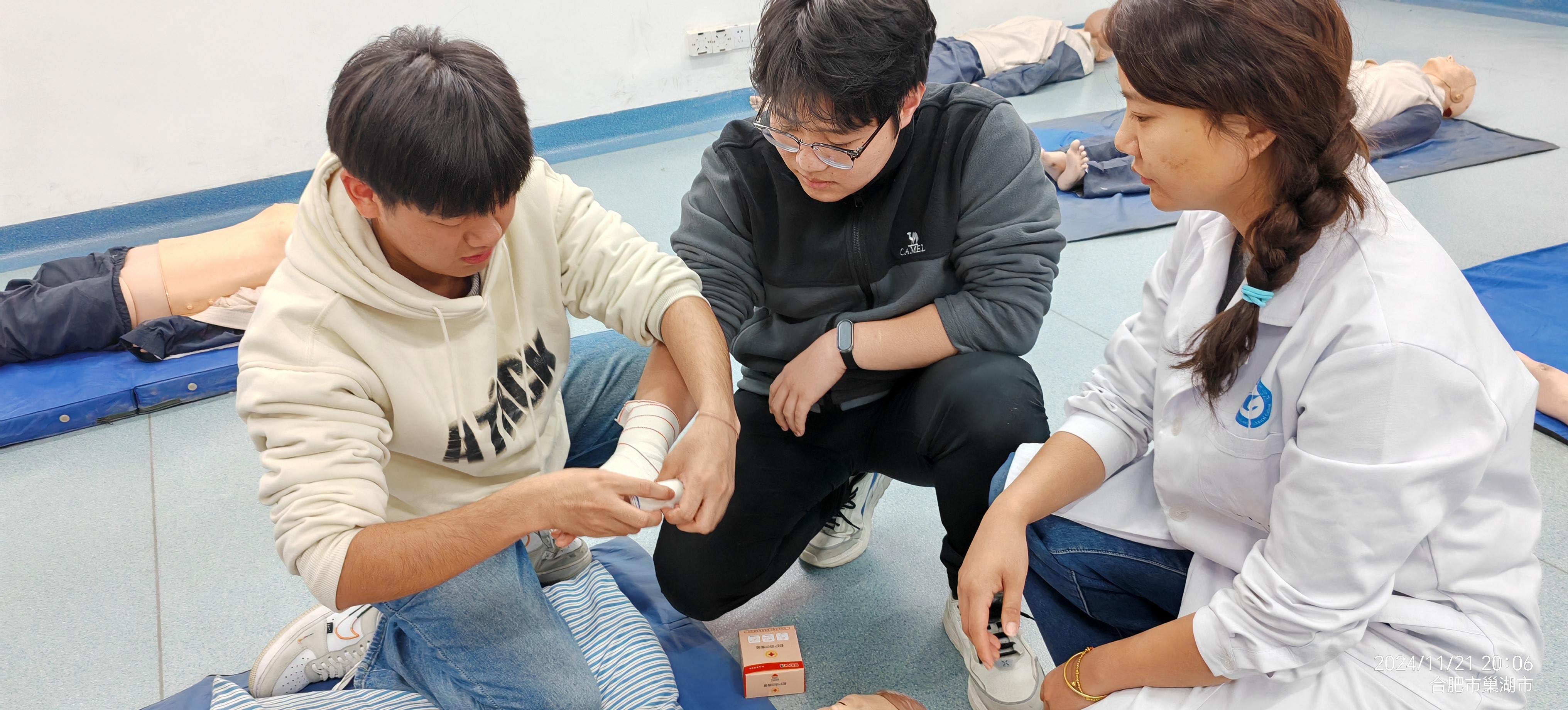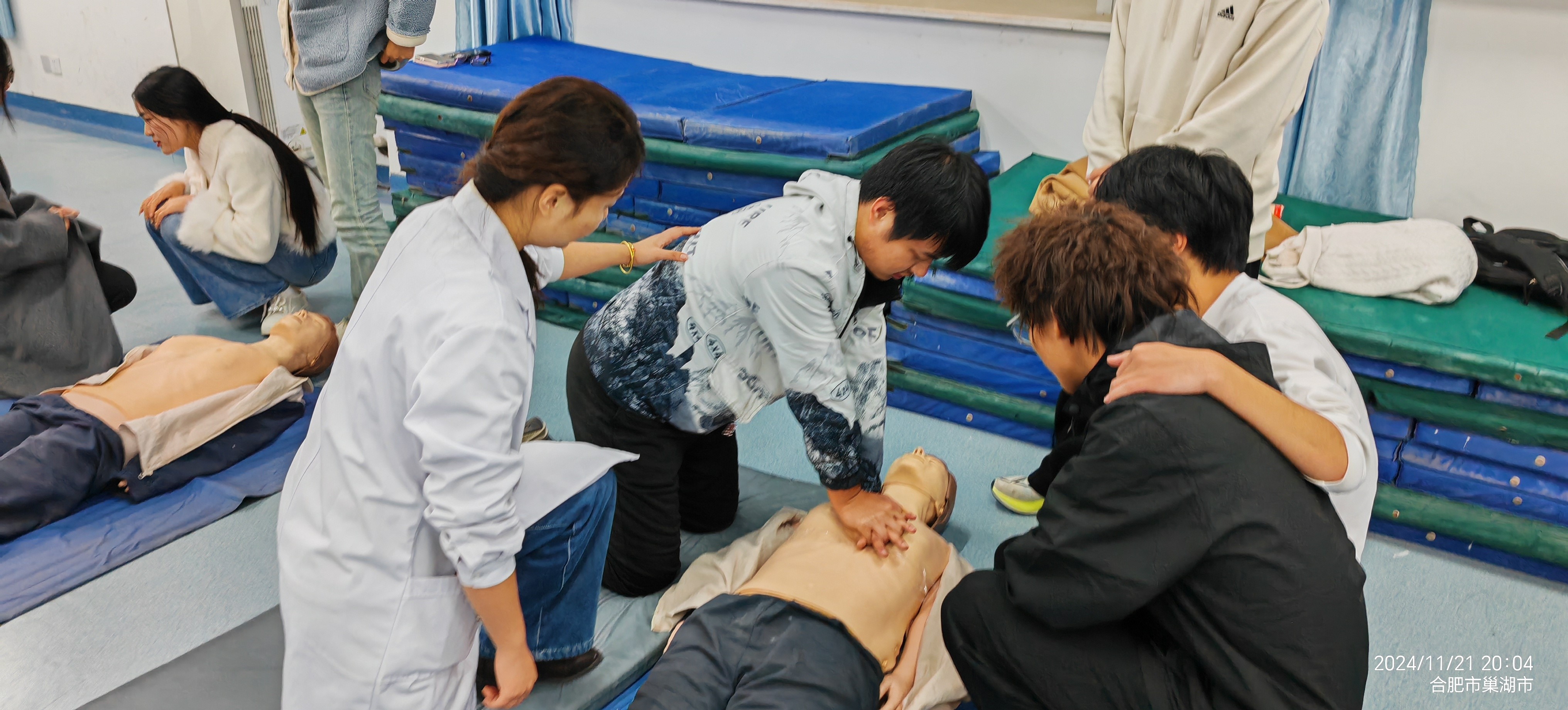 此次活动联合合肥市巢湖市红十字会共同发起,线上线下同步培训学生的急救知识和实践技能。培训内容包括心肺复苏(CPR)技术讲解、自动体外除颤器(AED)的使用、止血包扎等实用技能。