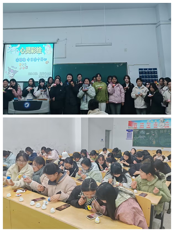 活动中每位同学手持画笔,专注认真地创作属于自己的石膏娃娃。五彩斑斓的颜料将原本单调的白色娃娃变得生动而有趣,让每个娃娃都充满了个性,仿佛有了自己的灵魂。通过亲手绘制这些可爱的娃娃,同学们不仅体验到了创作的乐趣,还在这个过程中提升了自己的动手能力和专注力。本次活动的一个亮点是作品的赠送和交换活动,同学们用彩纸留下祝福赠言,分享大学的心得与感悟,彼此鼓励、共同进步,加深了彼此之间的友谊和感情。
