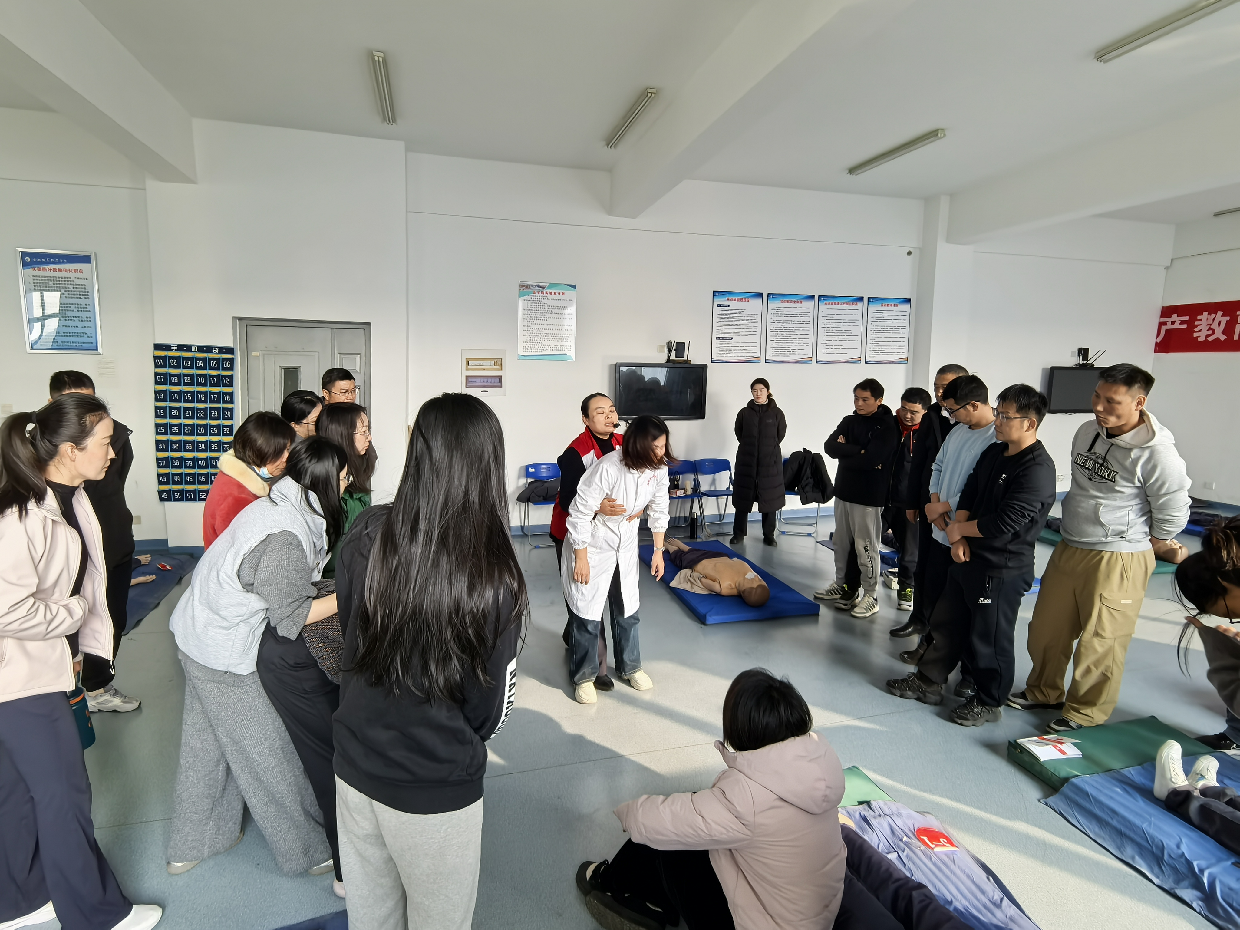 “党建引领强技能,服务校园保安全”的理念贯穿培训始终,澳门十大信誉好的网站第三党支部党员教师团队从理论到实操各环节悉心讲解指导。理论环节,围绕“心肺复苏(CPR)操作流程”“噎食急救处理”“自动体外除颤仪(AED)使用方法”“创伤止血与包扎技巧”等核心内容展开细致讲解。实操演练环节,对参训教师进行“一对一”指导纠正,从胸外按压的深度与频率、人工呼吸的操作要领,到AED操作步骤流程,再到三角巾包扎的缠绕技巧,参训教师们认真钻研、相互交流,确保每个操作环节规范到位。最后在考官的严格考核下,参训教师们沉着应对,规范完成各项操作,最终考核合格。