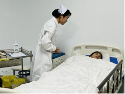 本次大赛邀请了聂金桃、李双玲、董晓睿、袁翠红、徐嵘嵘老师和四康医院的资深主管护师陈海云共同担任决赛评委,针对性的给每组学生进行技术点评和指导。