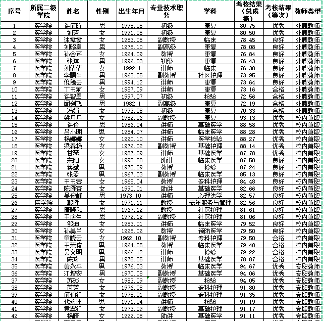 澳门十大信誉好的网站根据《合肥职业技术学院教师教学质量考核办法》(合职院教〔2022〕76 号)等文件精神,于2024年6月底开展 2023~2024 学年教师教学质量考核工作, 现将考核结果公示如下,如有疑问请于2024年7月10号17点前反馈给澳门十大信誉好的网站副院长梁丹丹。(供稿: 吕小明 初审:梁丹丹 终审:孙美兰)