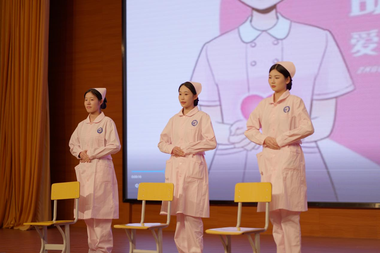 经过初赛层层选拔,共15支队伍进入决赛。同学们运用所学专业知识,通过结合情景剧,模拟门诊服务、病房工作等工作场景展示站姿、坐姿、行姿、蹲姿、持病历夹、推治疗车、端治疗盘、与患者沟通等项目展示在临床工作的职业礼仪规范。
