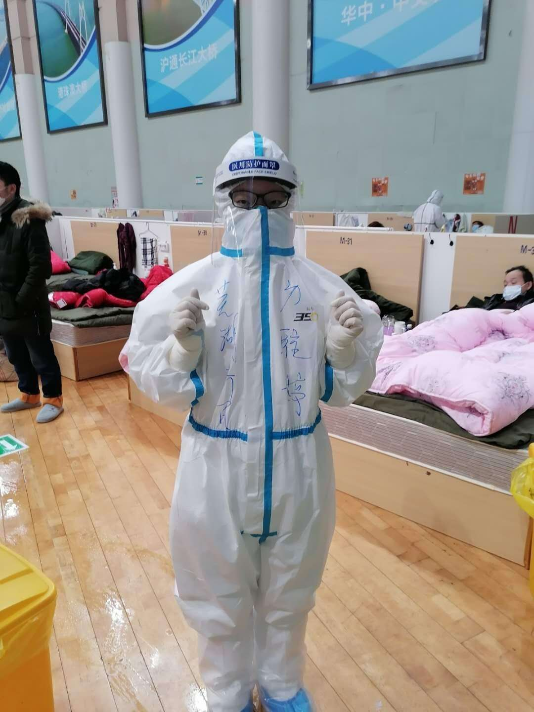 在党和政府的英明领导和决策下,在各界的共同努力、支持和配合下,武汉体育中心方舱医院的工作获得了良好的进展。出院病人数逐渐增多,新确诊病例数稳步下降,在短短的一个月不到的时间,他们的病人从400多人降到了110人,看着病人们一个个的离开,前往隔离点,既开心又不舍,开心他们能健康返家,不舍他们带来的欢笑。