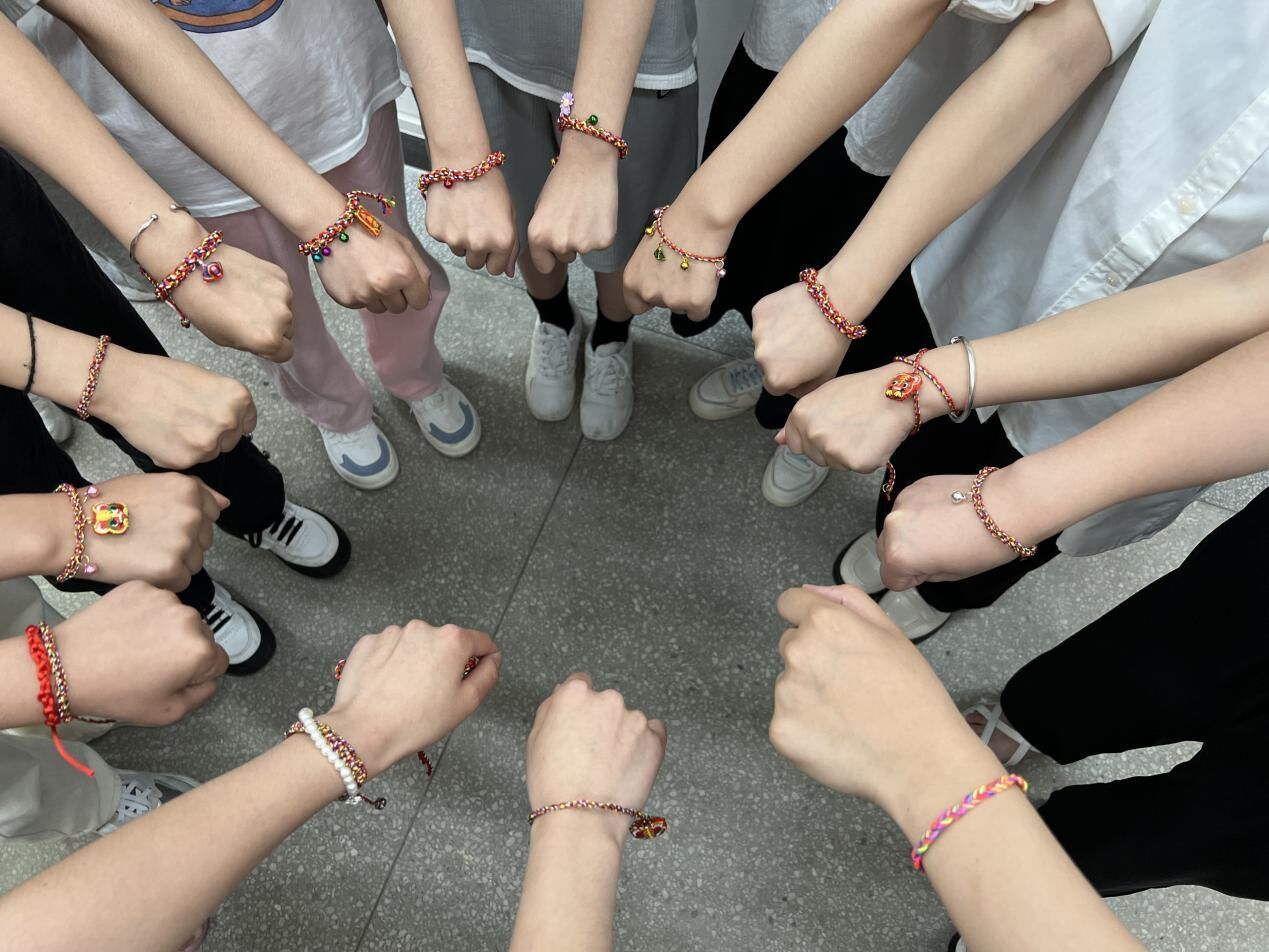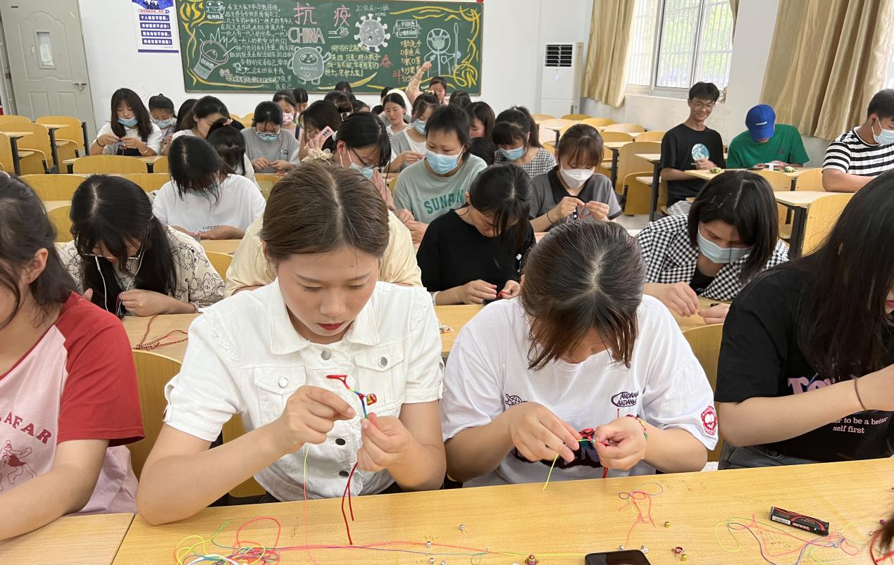 彩线轻缠红玉臂,小符斜挂绿云鬓。“五彩绳DIY”活动在D栋教学楼热烈开展,五十余名同学现场制作代表着祈福纳吉美好寓意的五彩绳,感受端午结绳互赠的风俗与文化。大家在亲身体验中了解民俗、传承民风、认同文化,感受中华优秀传统文化的内涵。