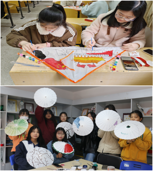 绘声指尖艺术社组织同学们巧手绘制油纸伞,寄托清明哀思;康复之家社团组织同学们搭骨架框、画风筝面,制作风筝,利用春日假期“忙趁东风放纸鸢”;绘声追梦文艺社组织同学们开展青团制作活动,青团寓意团圆和纪念先人,让学生感受清明传统节日氛围的同时,增强大家对传统节日的认同感。