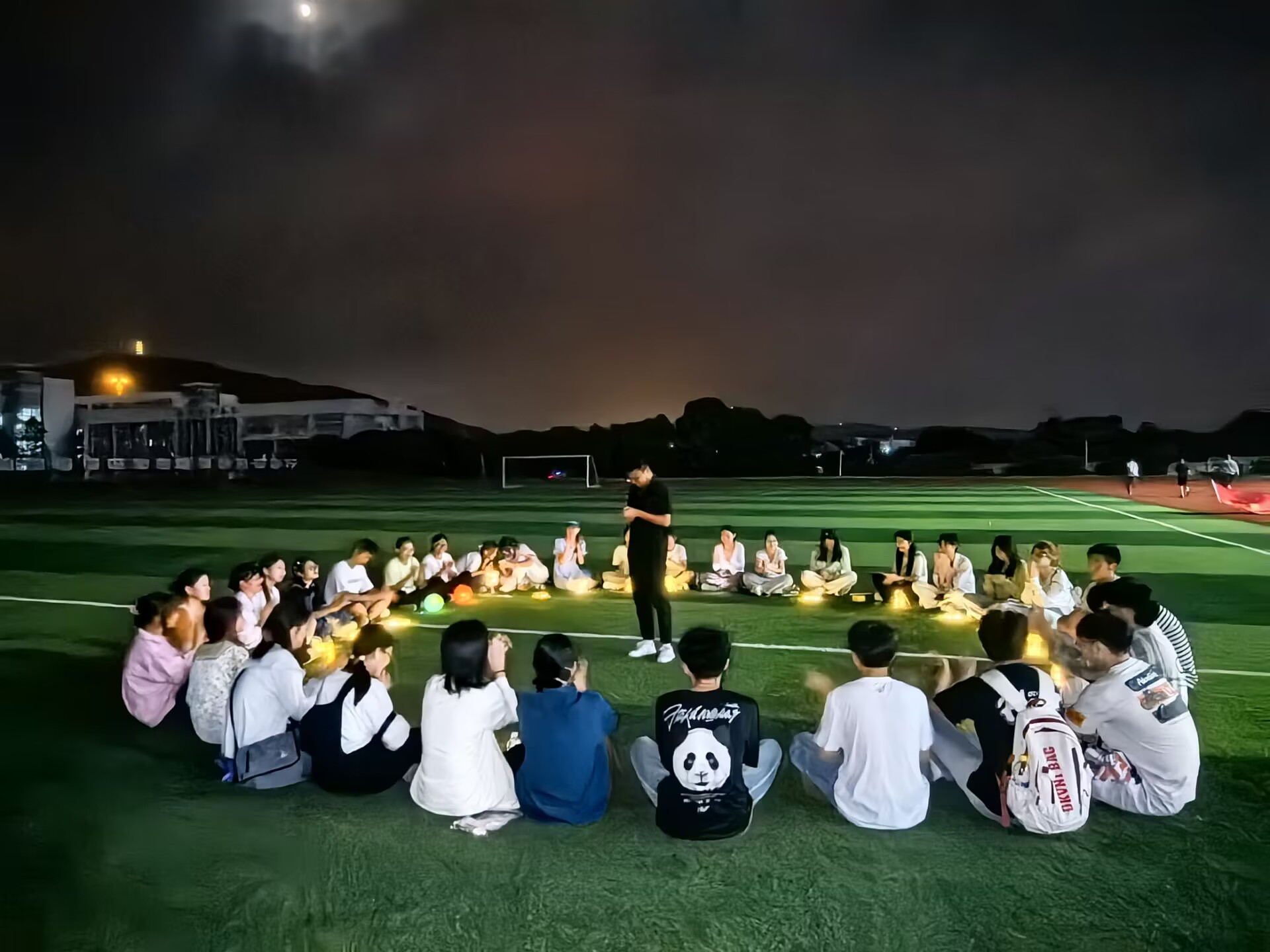 花灯制作完成后,学院还安排了茶话会环节。大家在操场上围坐一圈,手捧自制花灯,吃着月饼,畅享未来。同学们纷纷表达了自己的美好愿景,共同度过这美好的节日。