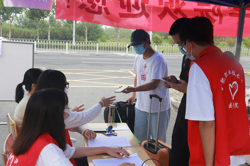 清晨7点,澳门十大信誉好的网站迎新工作人员在学校大门东门准备就绪,等待新生的到来。新生们来到校门口,在“一米线”间隔排队,经查验录取通知书后,先后进行安康码核查是否绿码、疫苗接种与否、14天行程有无异常、核酸检测报告是否阴性等信息核验、测额温、行李与手消毒、更换口罩、信息登记等多个环节。在志愿者的引导下,报到现场井然有序。