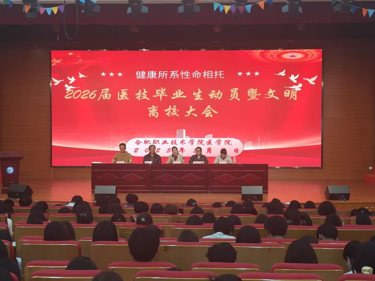 202557日下午,澳门十大信誉好的网站在大学生活动中心隆重举行“健康所系性命相托”2026届医技毕业生实习动员暨文明离校大会。澳门十大信誉好的网站党政领导班子、辅导员代表及400余名实习生参会。大会以“技术精进+职业敬畏”为主线,为即将奔赴50余家实习单位医技学子筑牢“幕后守护者”的使命担当。会议由党总支副书记梁春艳主持。