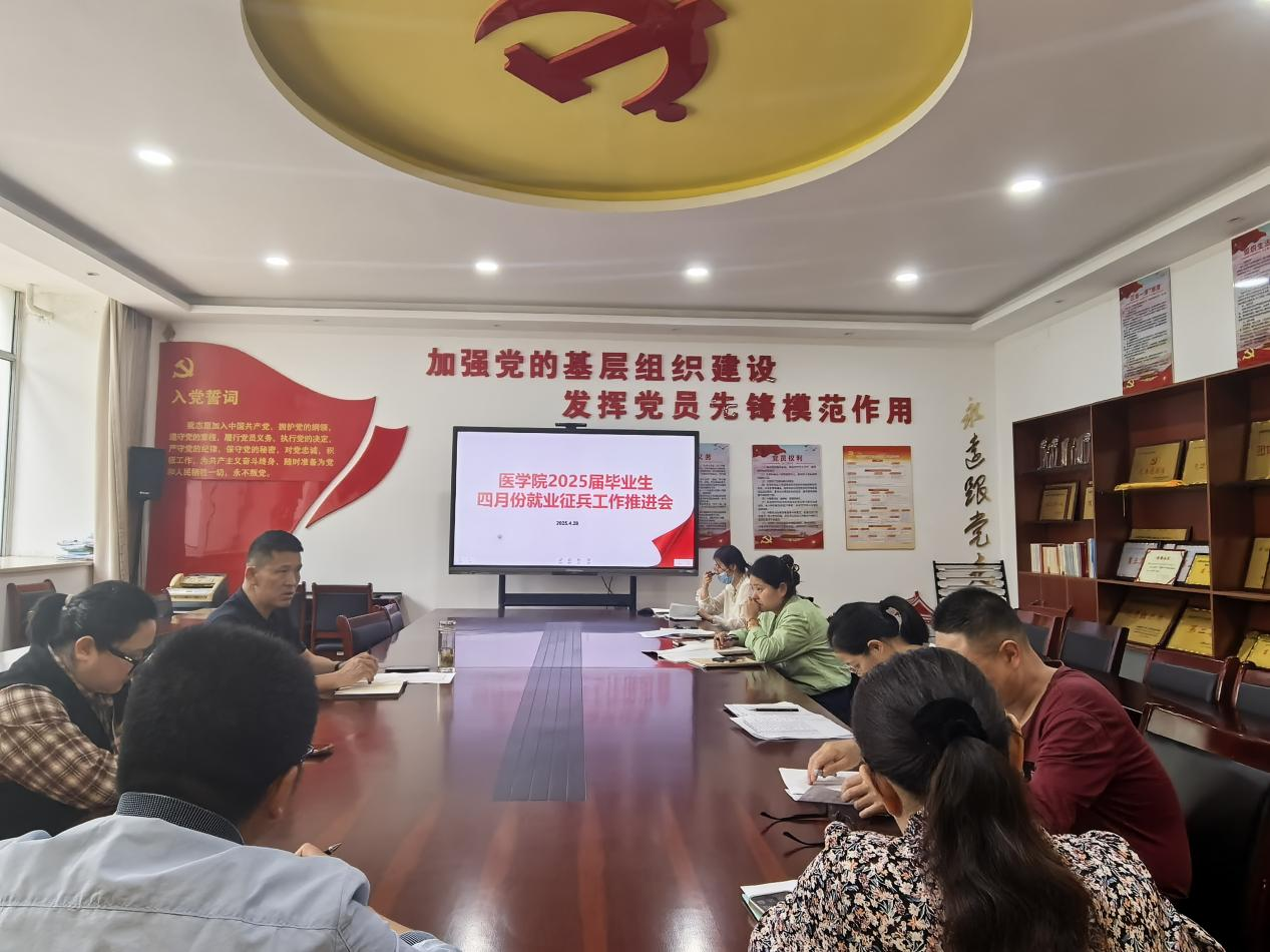 为扎实推进 2025 届毕业生就业及征兵工作,澳门十大信誉好的网站于4月28日在医学楼214党员活动室召开2025届毕业生就业征兵工作推进会。